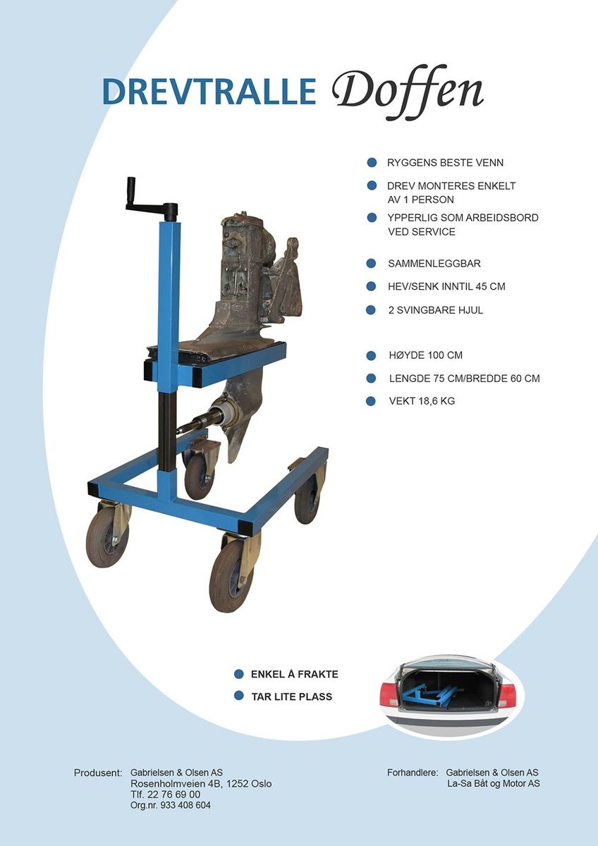 Drevtralle for montering/demontering av båtdrev.